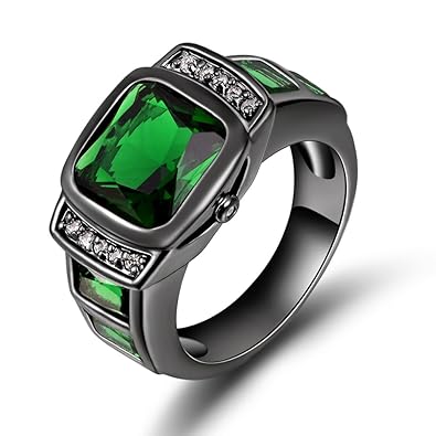 Size 6 Noble Green Emerald Ring Men Women S 10kt Black Gold