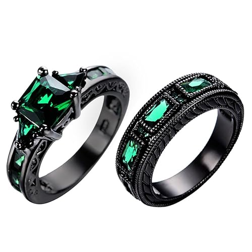 Full Black 925 Silver Green Emerald Bridal His Her Wedding Band