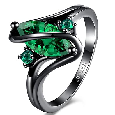 Fashion Women Green Emerald Wedding Ring 10kt Black Gold Filled