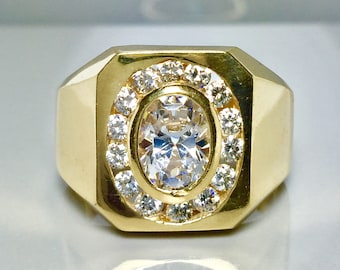 New Men S Yellow Gold Big White Lab Diamond Ring Solid Fashion Hip