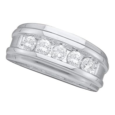 14k White Gold Mens Diamond Channel Set Wedding Ring Wedding Bands