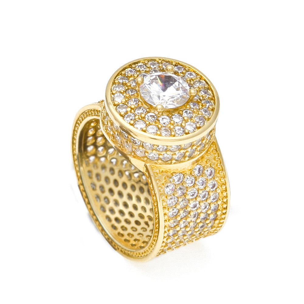 2018 Luxury Mens Big Rings 14k Gold Plated Hip Hop Bling Zircon
