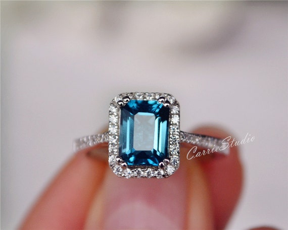 Natural London Blue Topaz Ring Emerald Cut Topaz Engagement Etsy