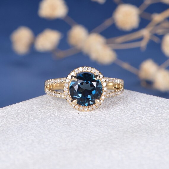 London Blue Topaz Engagement Ring Gold Wedding Ring Unique Etsy