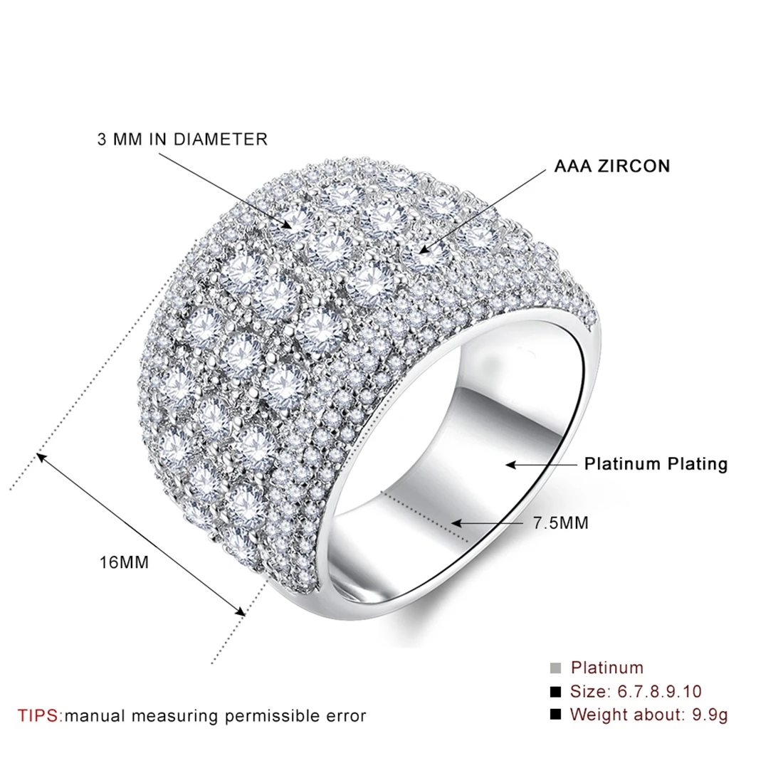 Clear Cubic Zirconia Micro Pave Setting Big Wedding Rings For Women