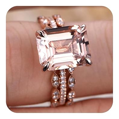 Amazon Com Rudrafashion 9x11mm Emerald Cut Morganite Diamond 18k