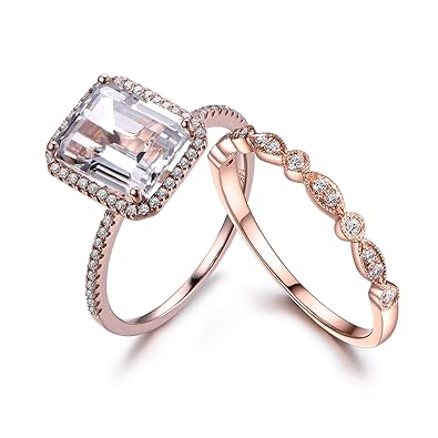 Amazon Com White Topaz Bridal Set 8x10mm Emerald Cut 14k Rose Gold