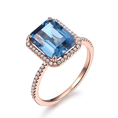 London Blue Topaz Engagement Ring Emerald Cut Solid 14k Rose Gold